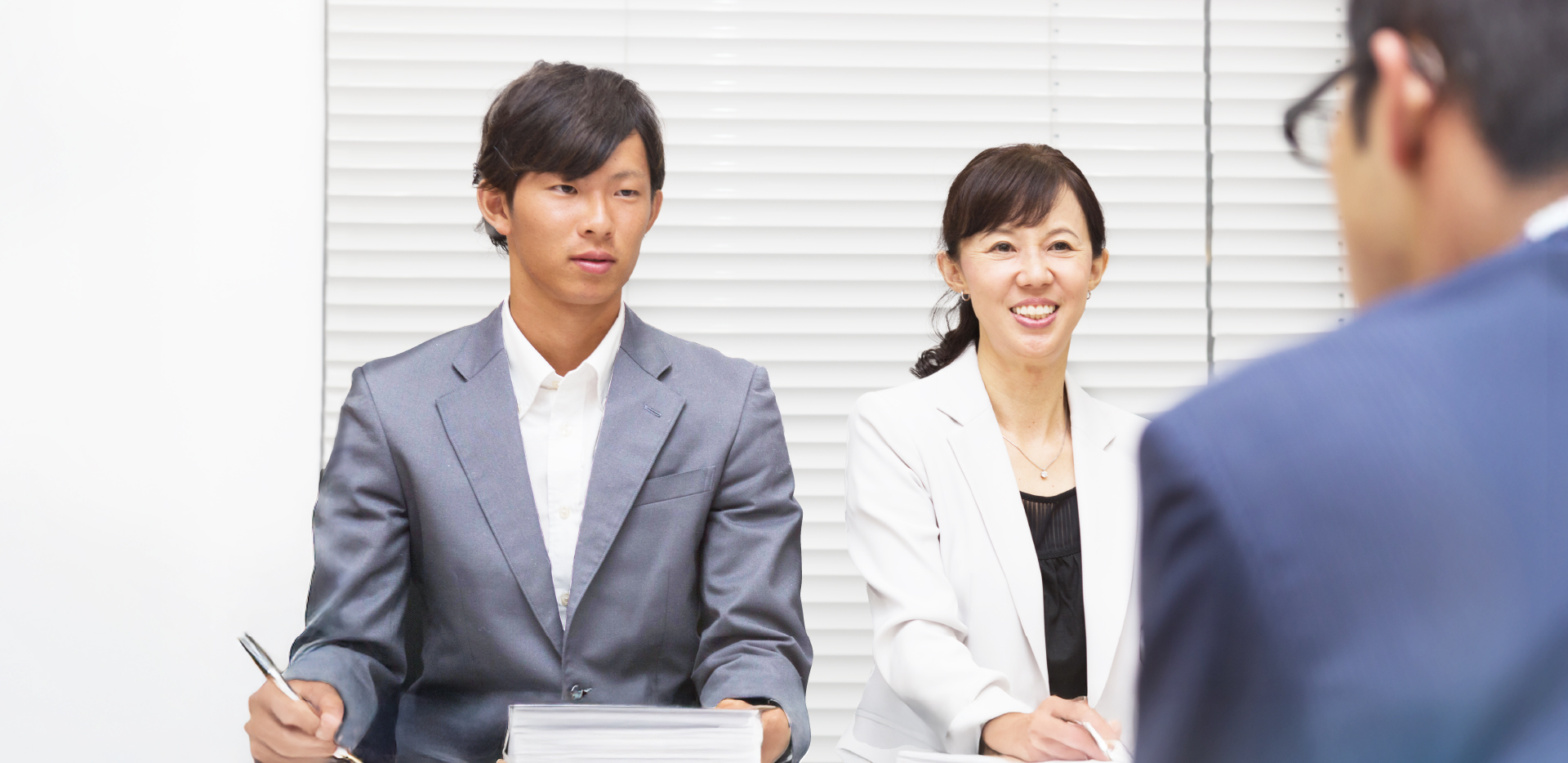 事務所にお越しいただき、対面で面接をしていただきます。簡単な適性検査も行います。